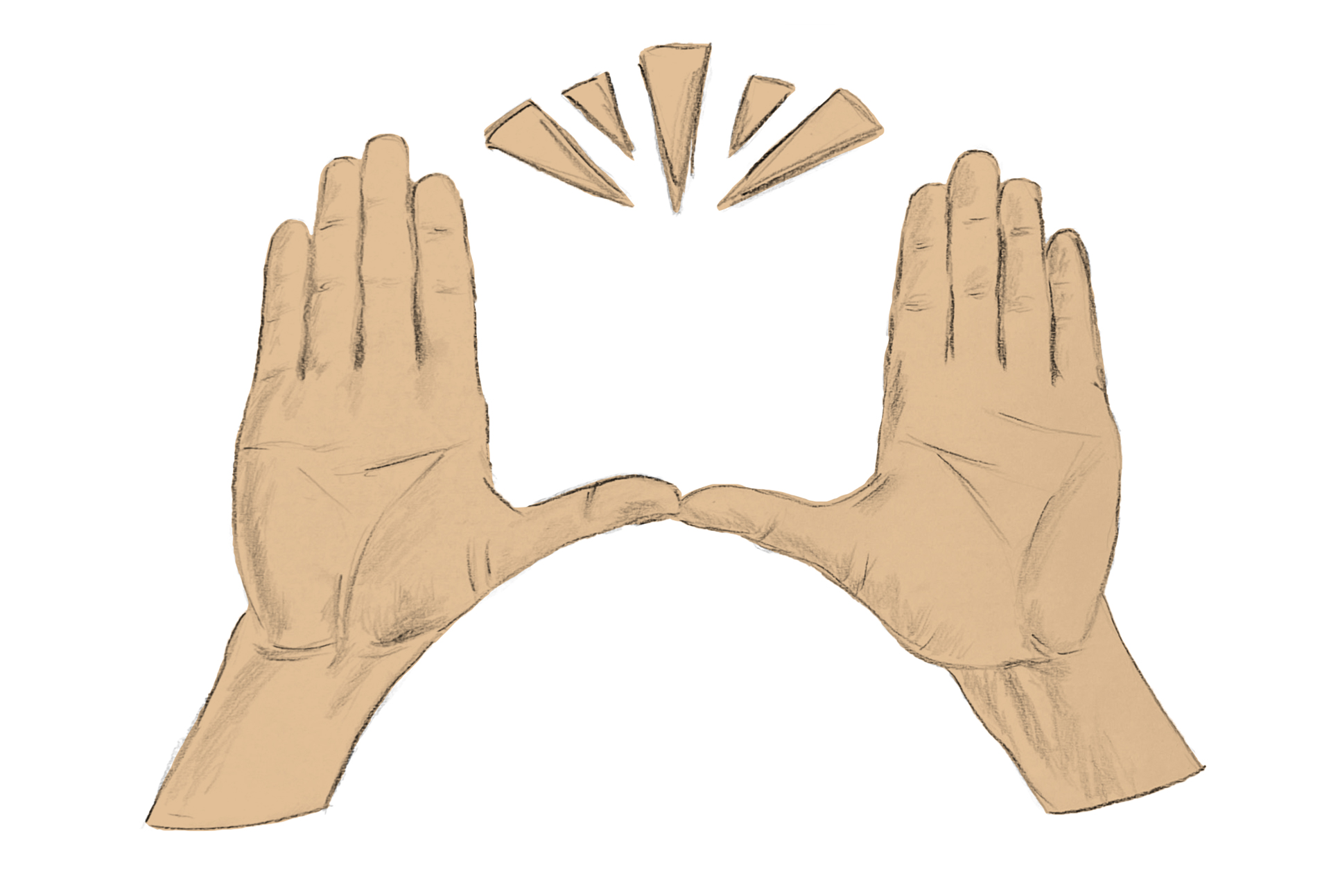 Así cuando golpeamos nuestras palmas y aplaudimos, entrechocamos dos mundos aparentemente opuestos. Y cuando las juntamos para hacer una oración, o para pedir algo a alguien como gesto de ruego. La mano derecha y la izquierda se acoplan con los dedos en dirección al cielo. Como si ambas palmas se besaran, abriendo su cabeza hacia lo trascendente.