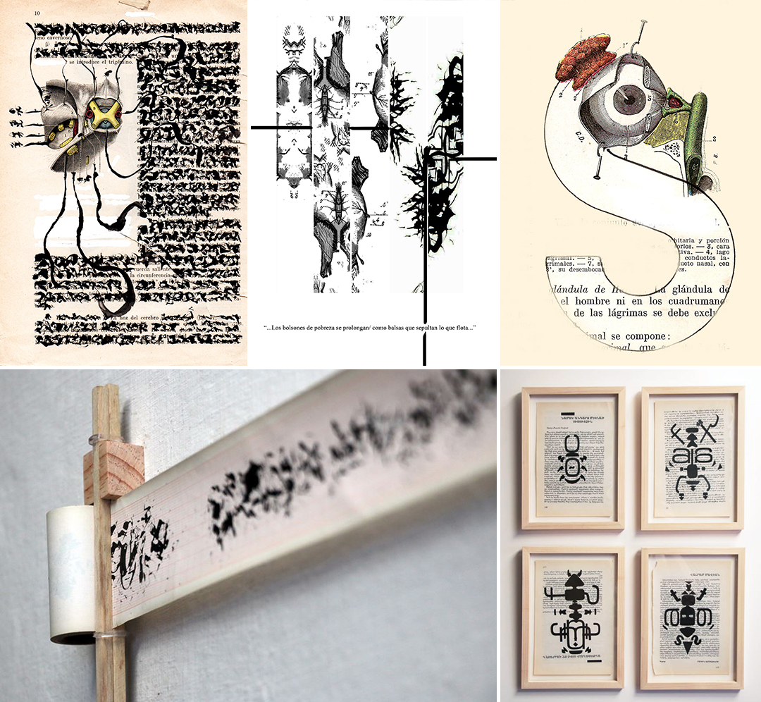 Entre otros antecedentes de la poesía visual podríamos citar a Rabelais (1494-1553) con el caligrama El sombrero y por supuesto los clásicos ejemplos de Guillaume Apollinaire (1880-1918) con su obras La dama con sombrero o La torre Eiffel y Stéphane Mallarmé (1842-1898) como los referentes de un movimiento constante y  expansivo que ha tenido epígonos maravillosos como las experimentaciones de la Poesía Concreta Brasileña, creada en 1956 por Haroldo de Campos, Augusto de Campos y Décio Pignatari. En nuestro país, es el poeta Oliverio Girondo quien inicia la poesía visual con su poema Cantar de las ranas de 1932; continúa en 1966 el Grupo Diagonal Cero liderado por el artista Edgardo Antonio Vigo y sigue en 1990 con el Grupo Paralenguas. Desde hace varios años hasta la actualidad, Vórtice Argentina organiza encuentros internacionales de Poesía Visual, Sonora y Experimental. Entre los nombres sobresalientes no podemos dejar de mencionar a Mirtha Dermisache.