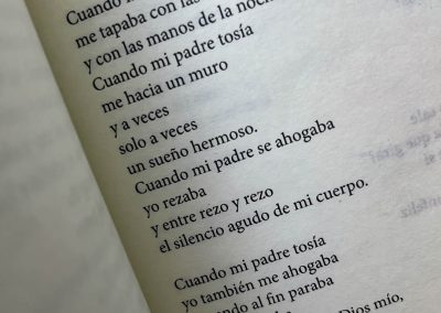 La poesía de Con mis manos dormidas no es, en rigor, esa memoria. Menos aún, es posesión de ella. No la blinda. Por el contrario, la poesía de este libro de Abraham es solidaria con aquella que sabe que es búsqueda, que es un caminar que acaso nunca llegue (porque ni siquiera lo desea) a la plenitud de la posesión de ese objeto, de esa cosa que permanece siempre afuera, que está todo el tiempo en otro lugar: obstinada, sorda a la palabra, alienada del ritmo, ajena al lenguaje, tocada apenas por una palabra que irradia. Y en ese hecho de nunca agarrar del todo, en ese gesto de no poseer aquello mismo que justifica su existencia, la poesía sucede.
