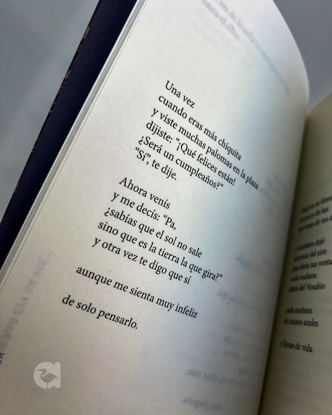 Un padre que muere, las cenizas leopardianas despedidas en otro lado por el volcán Vesubio que vuelven todo el tiempo, la vida como padre y como hijo recién huérfano en una ciudad de la pampa cordobesa, una paloma que sobrevuela las ruinas de Pompeya, el viento del Mediterráneo y los atardeceres plácidos en un camino de tierra perdido en la provincia argentina. O un punto en Google Maps que señala un espacio del recuerdo, lo extranjero en el cuerpo de la lengua de Alemania que el poeta bien conoce, el relampagueo de una tierra, Siria, sacudida en estos años por la guerra, de la que se proviene pero a la que no se vuelve nunca. Esos son algunos de los materiales que confluyen en Con mis manos dormidas, el segundo libro de poemas de Juan Pablo Abraham, nacido en Noetinger, en la provincia de Córdoba, y residente ahora en la ciudad de Villa María.