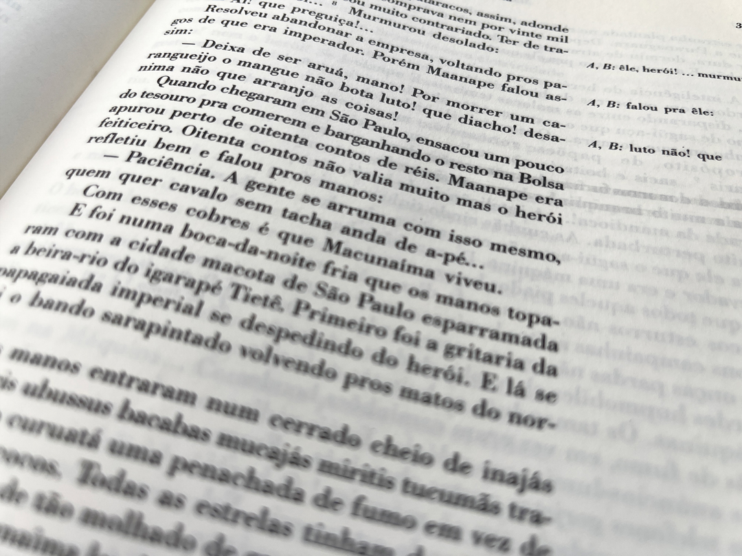 La edición de Macunaíma, o herói sem nenhum caráter, publicada por la editorial argentina Mansalva en 2022, recupera una obra fundamental del modernismo brasileño escrita por Mário de Andrade (1893-1945) y publicada originalmente en 1928. Definida por su autor como una rapsodia, la novela narra las peripecias de Macunaíma, un personaje originario de la selva amazónica que emprende un viaje hacia São Paulo en busca de su amuleto perdido, la muiraquitã. A lo largo del recorrido, el protagonista atraviesa diversos escenarios que reflejan la diversidad cultural y geográfica de Brasil, integrando elementos del folklore indígena, africano y europeo. La estructura fragmentaria y no lineal del texto combina relatos, mitos y leyendas, construyendo una narrativa que desafía las formas tradicionales y cuestiona la identidad nacional brasileña. Desde el punto de vista lingüístico, la obra incorpora neologismos, regionalismos y expresiones de lenguas indígenas y africanas, conformando una “gramatiquinha” propia que se distancia del portugués europeo y refleja la riqueza lingüística del país.